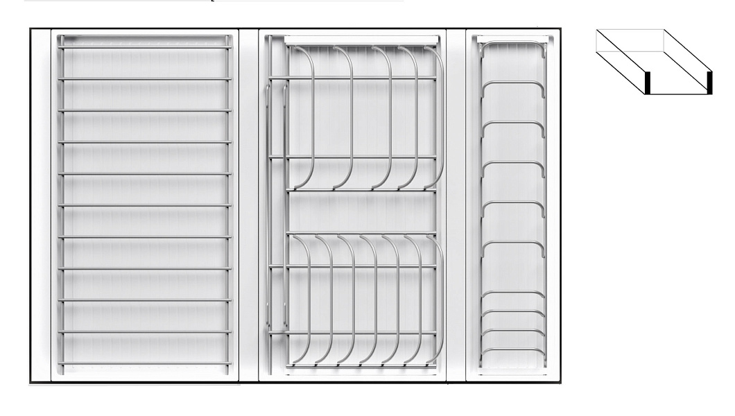 • 1 большой модуль для посуды + 1 большой модуль с решеткой + модуль для столовых приборов