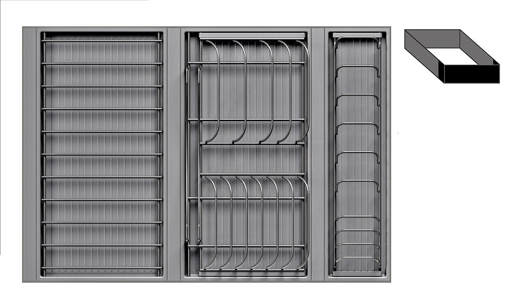 • 1 большой модуль для посуды + 1 большой модуль с решеткой + модуль для столовых приборов