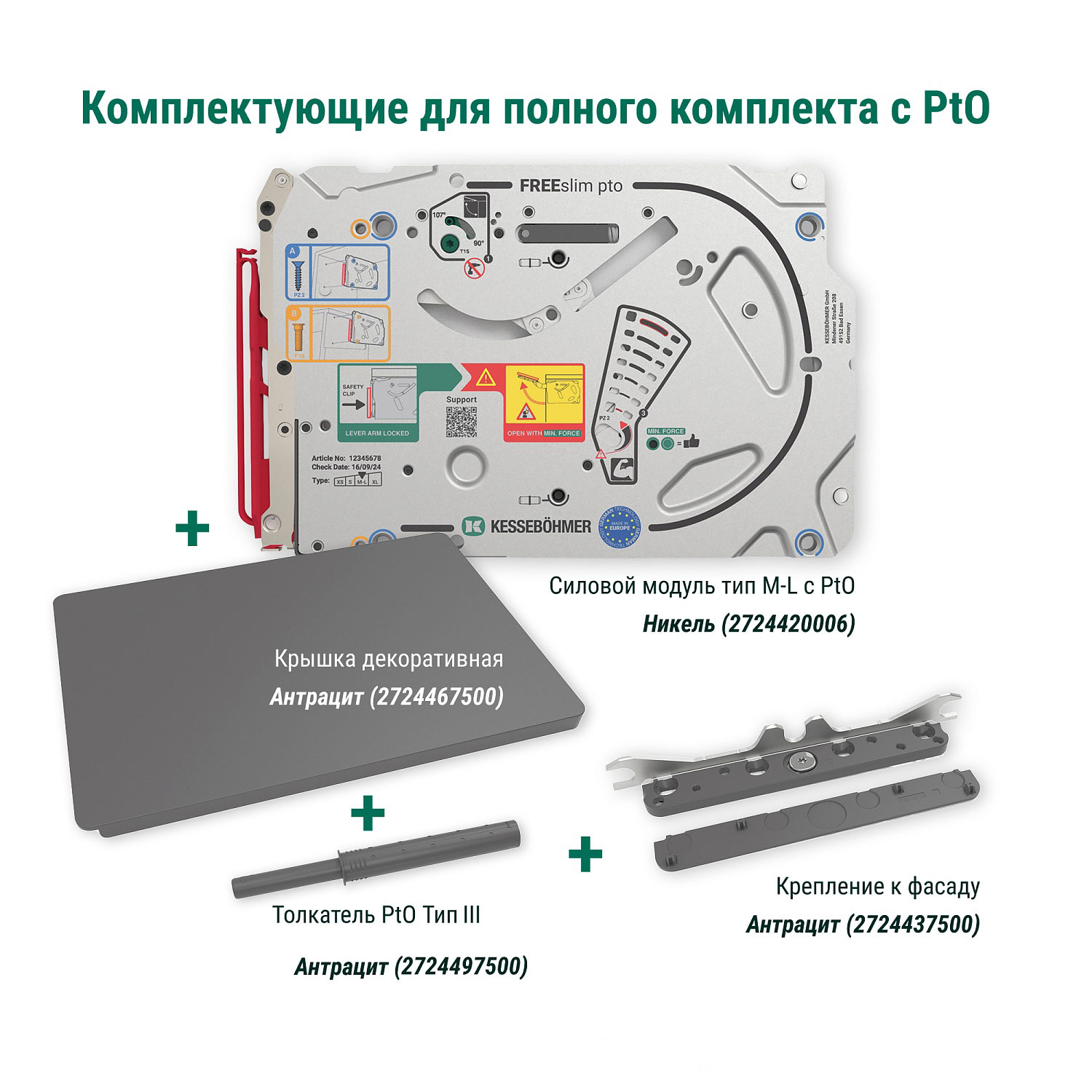 Силовой модуль тип M-L Pto левый и правый, к подъемнику ФриСлим Флап, H 225-650, 2 шт + 4 установочных штифта, 8 шурупов 4х20 мм, цвет НИКЕЛЬ (2724420006)