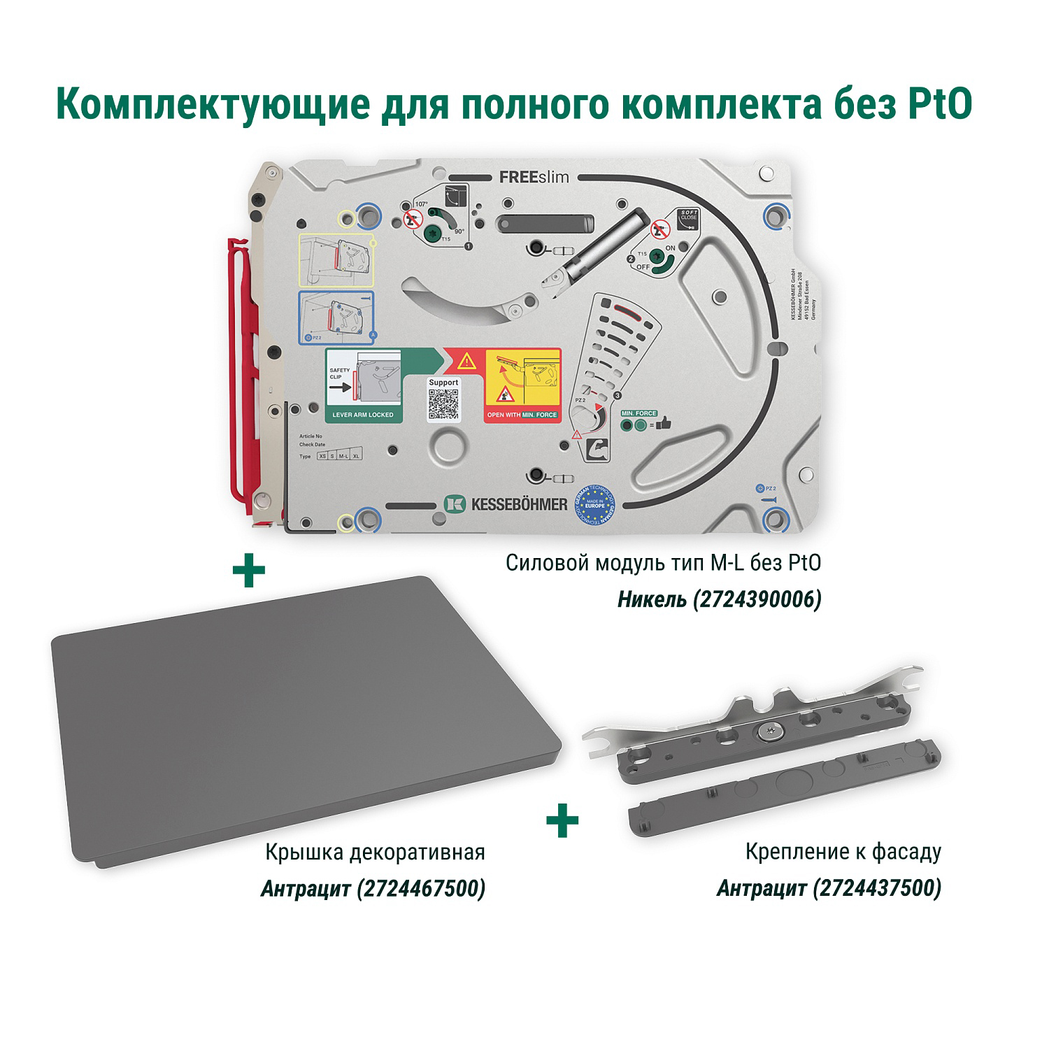 Силовой модуль тип M-L левый и правый, к подъемнику ФриСлим Флап, H 225-650, 2 шт + 4 установочных штифта, 8 шурупов 4х20 мм, цвет НИКЕЛЬ (2724390006)