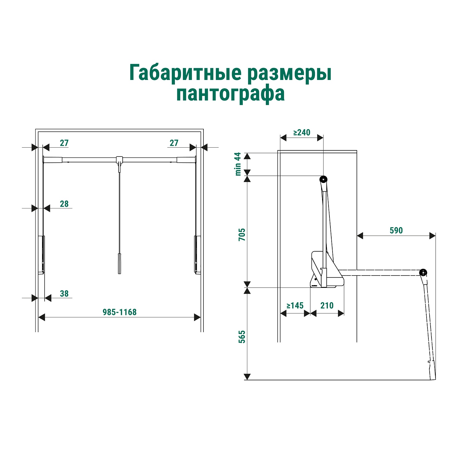 Conero Пантограф для гардеробной стандартный, Конеро W 985-1168 мм, нагрузка 0,5-12 кг